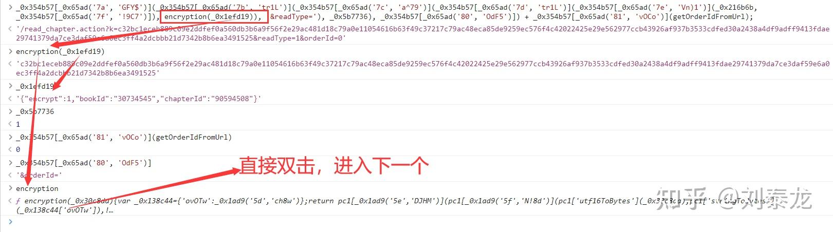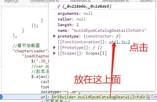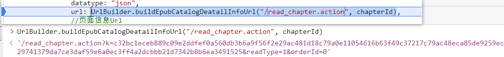 很明显请求的就是这个地址,但k后面的内容以及响应的内容貌似是加密的,先分析请求中的k值,注意前面的关键词read_chapter.action,直接搜索,很容易定位到这里,下个断点,刷新,在控制台执行一下代码