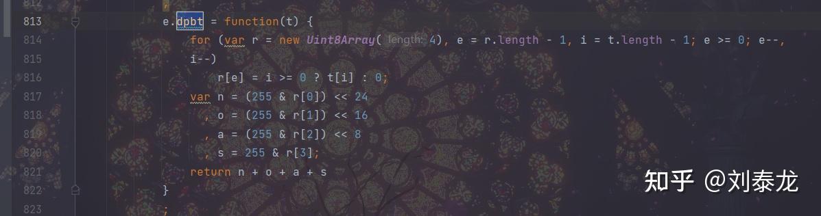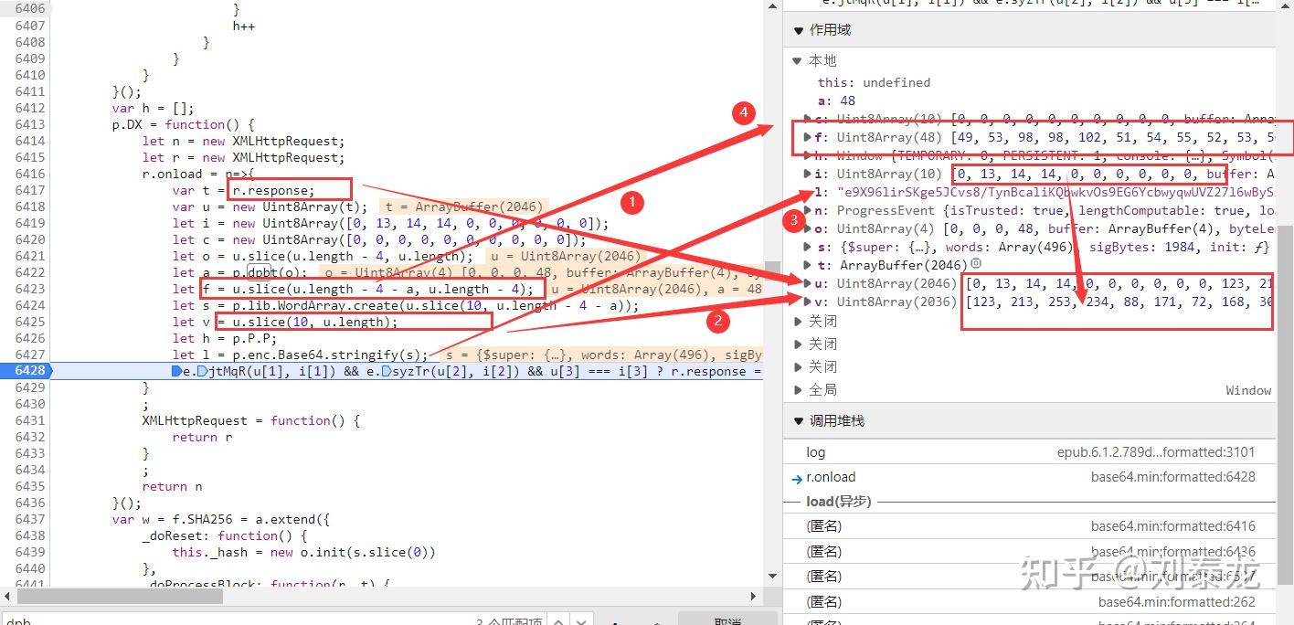 运气很好,很快注意到,response以及,Uint8Array(t);,这里面创建了很多数组,注意我标注的位置,后面都有用到,唯一有一个,dpbt函数是自己写的,反混淆后长这样。