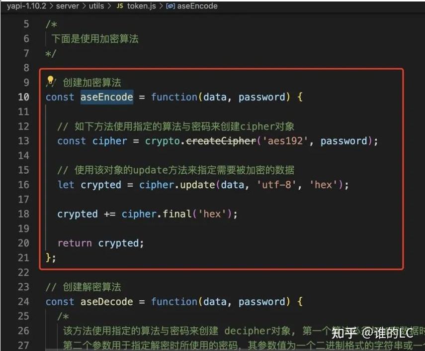在 server/utils/token.js#aseEncode() 方法下已经实现了加密算法,稍微改点代码即可直接使用。要注意的是,aseEncode()方法,data参数为 uid + &#39;|&#39; + token ,password 为 默认salt 或用户自定义salt。默认salt为 abcde