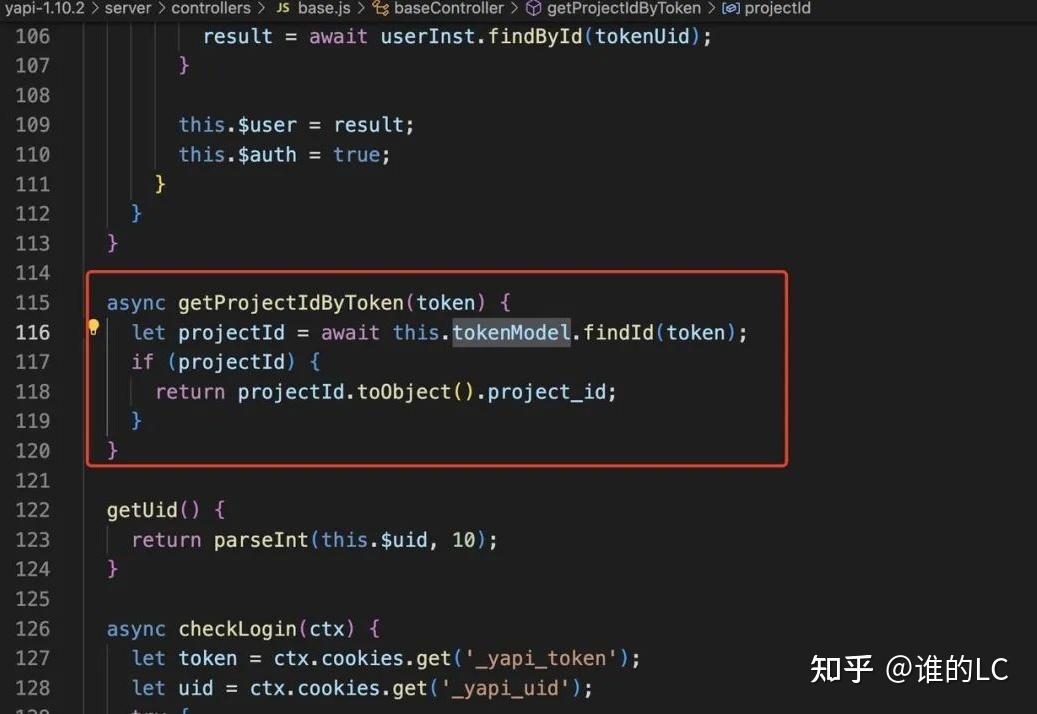tokens为False,经 if(!tokens) 条件判断后进入 getProjectIdByToken()。该方法使用在请求中获取到的token,查询项目id。在getProjectIdByToken() 内部会调用server/models/token.js#findId()。
