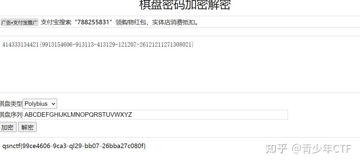 根据提示下棋,推测是棋盘密码,进行解密得到flag