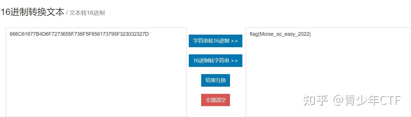 根据提示先用Morse密码进行解密,然后16进制转换文本得到flag