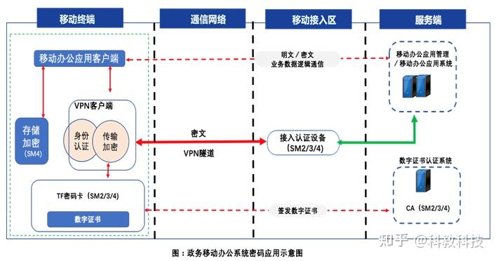移动办公系统使用商用密码,基于数字证书认证系统,构建覆盖移动终端、网络、移动政务应用的安全保障体系,实现政务移动终端安全、接入安全、传输安全和移动应用安全 。