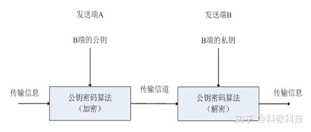 非对称加解密算法又称为公钥密码,其密钥是成对出现的。双方通信时,首先要将密钥对中的一个密钥传给对方,这个密钥可以在不安全的信道中传输;传输数据时,先使用自己持有的密钥做加密,对方用自己传输过去的密钥解密。