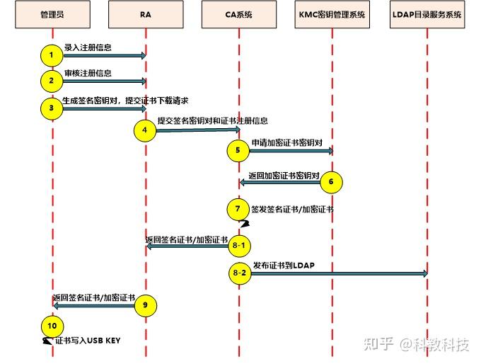 CA 系统:Ca系统整个PKI的核心,负责证书的签发。CA首先产生自身的私钥和公钥(密钥长度至少为1024位),然后生成数字证书,并且将数字证书传输给安全服务器。、CA还负责为操作员、安全服务器以及注册机构服务器生成数字证书。安全服务器的数字证书和私钥也需要传输给安全服务器。