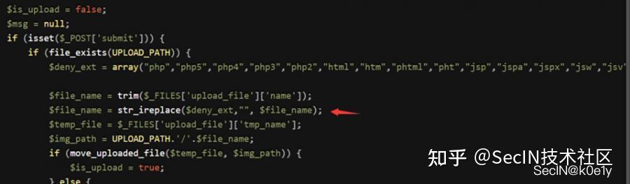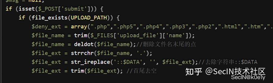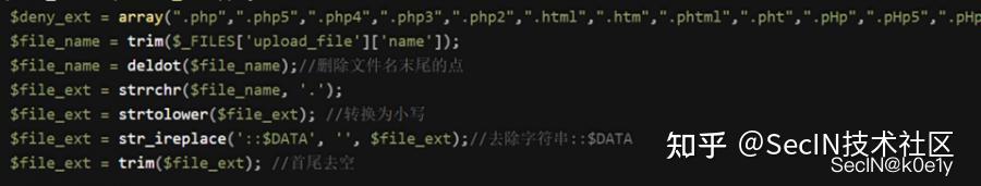 这关源码因为没有去掉最后的空格,因此在和数组进行比较时会匹配失败,导致上传成功,上传上的文件因为系统会自动把后边的空格去掉,形成一个可以解析的php后缀