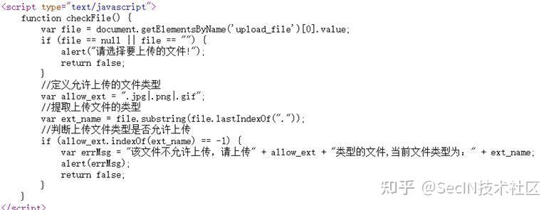 右键查看网页源代码,发现在上传时候调用了checkFile方法进行了检查,如果检查失败会返回false导致上传失败