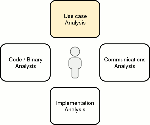 当分析一个应用程序时,你可以使用下图展示的四个“分析模型”,如果遇到障碍导致思路受阻时,你可以从其中一个模型切换到下一个模型,当然,这不是一个线性的切换,你也可以有自己的一套方法。