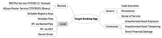 对于桌面应用程序,漏洞挖掘的思路本质上与web程序是类似的,不过也有一些区别:最大的区别在于,桌面应用的执行方式与流程与web程序不一样,下图展示的是桌面应用漏洞挖掘的一些内容: