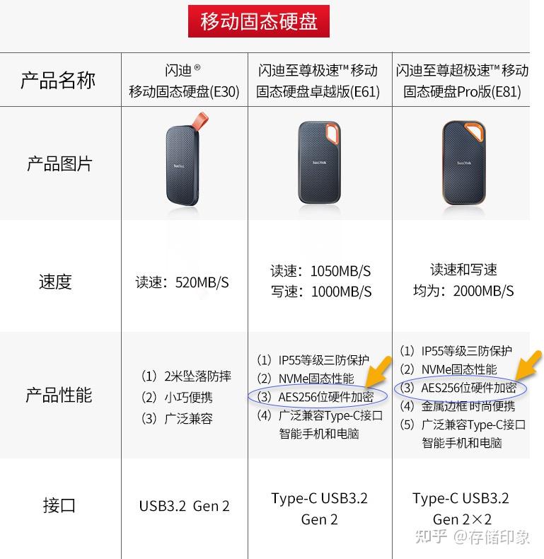 每个主流品牌的一些高端移动固态硬盘基本都支持AES 256位硬件加密,例如闪迪的E61和E81。