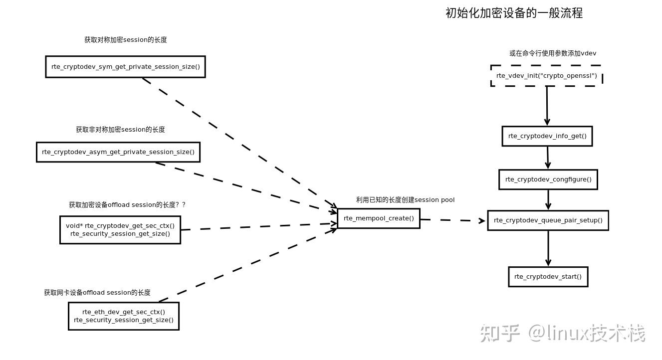 设备就绪后的一般使用流程。(需要关注的是:在分析rte_ipsec的源码过程中,并没有发现对API rte_crypto_op_attach_sym_session的调用。奇怪。。。)