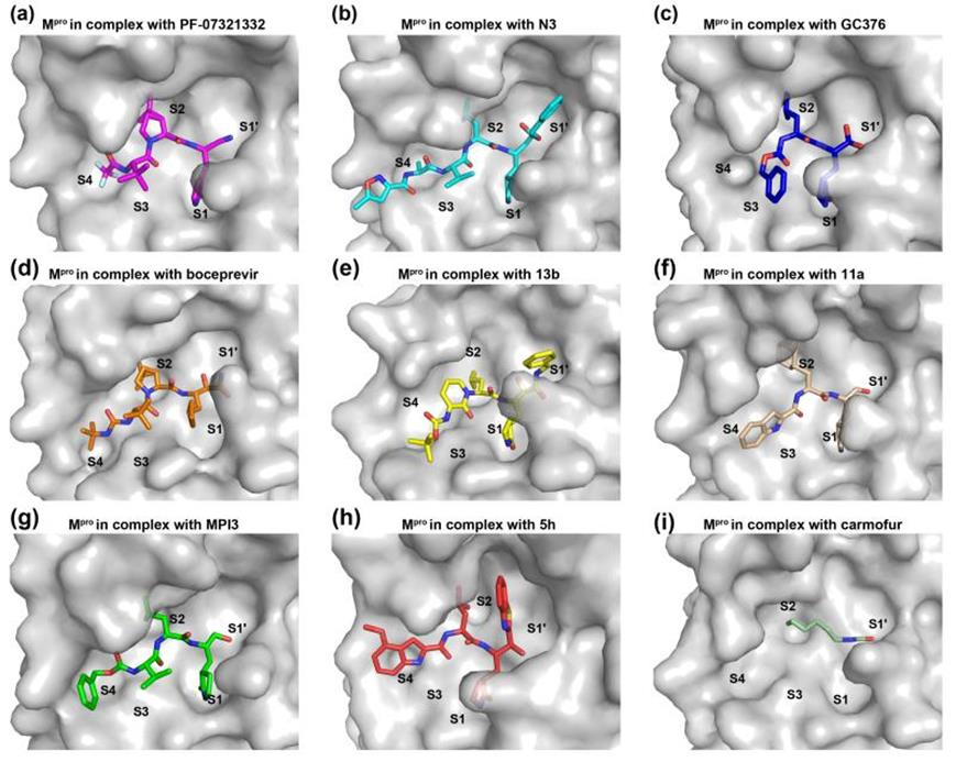 本研究中报道的与主蛋白酶复合物的抑制剂的结构或将为开发和优化更有效的抗 SARS-CoV-2感染药物提供结构基础,基于结构对此类抑制剂的优化或将有助于生成高效、广谱的针对当前COVID-19大流行的药物。
