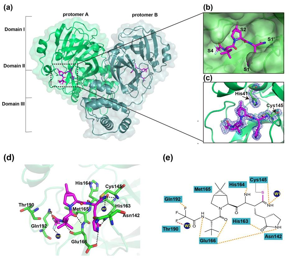 图2 SARS-CoV-2 Mpro与PF-07321332复合物的晶体结构